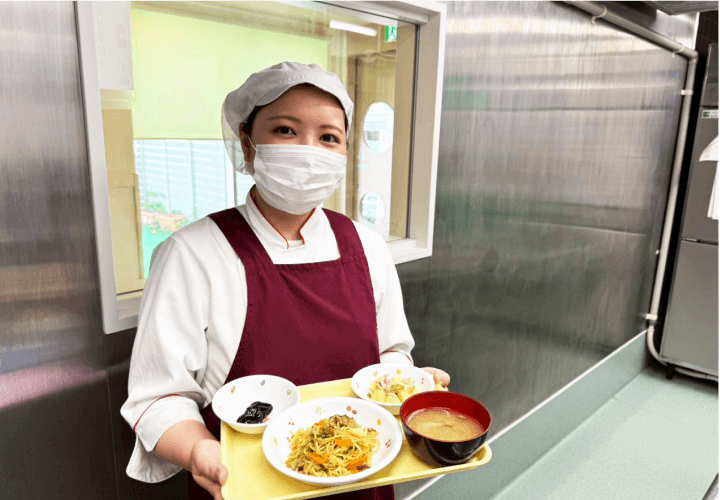 子どもたちの元気の源となる食事づくりを担っています。専門職として、子どもたち・職員の健康を支えるお仕事です。また、保育士と連携して食育活動にも中心的に携わります。